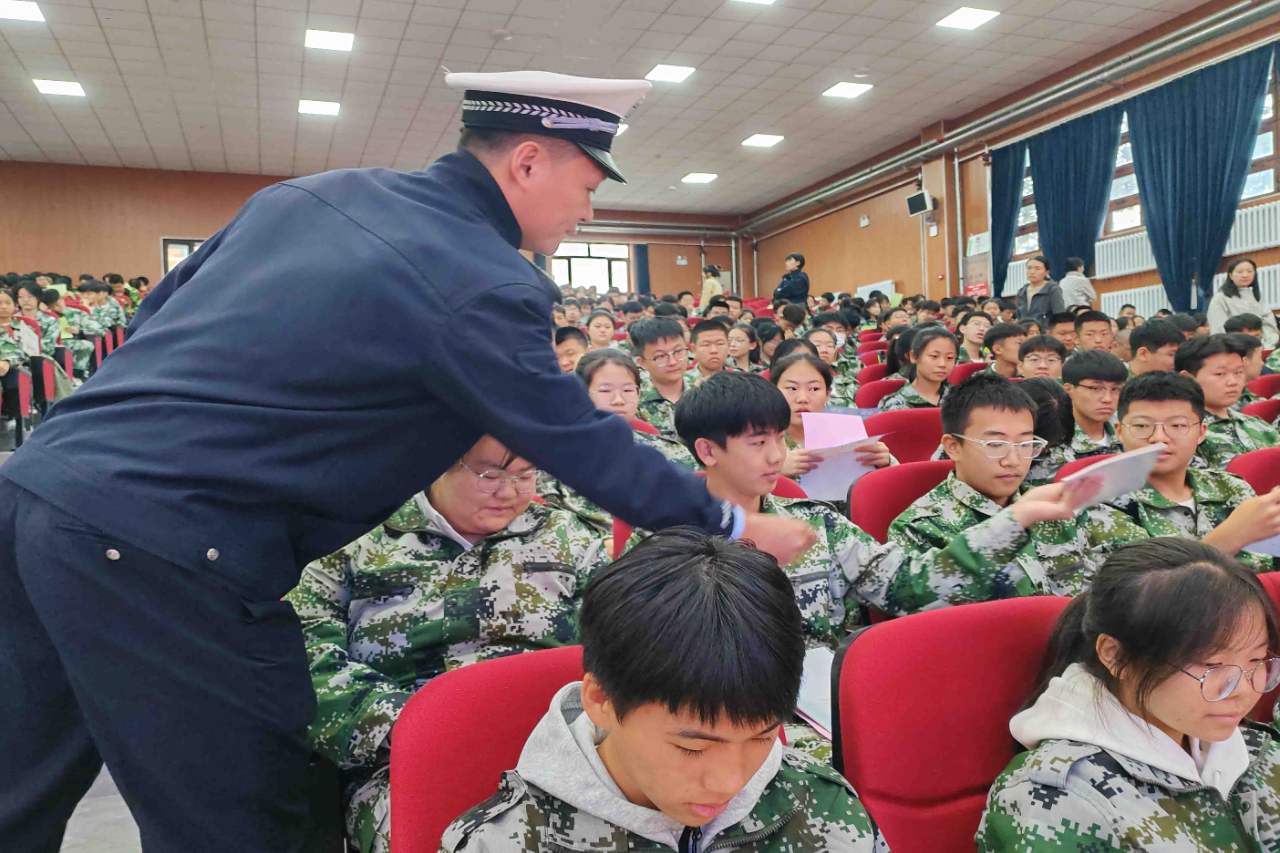 同時,采取寓教于樂的方式與同學(xué)們開展現(xiàn)場互動問答,普及安全過馬路、遠(yuǎn)離汽車盲區(qū)、不闖紅燈及遵守“一盔一帶”安全規(guī)定等交通常識,提醒學(xué)生通過人行橫道時務(wù)必牢記“一停二看三通過”,切勿疏忽大意,積極引導(dǎo)師生牢固樹立“安全第一”的出行意識,真正做到安全文明出行。